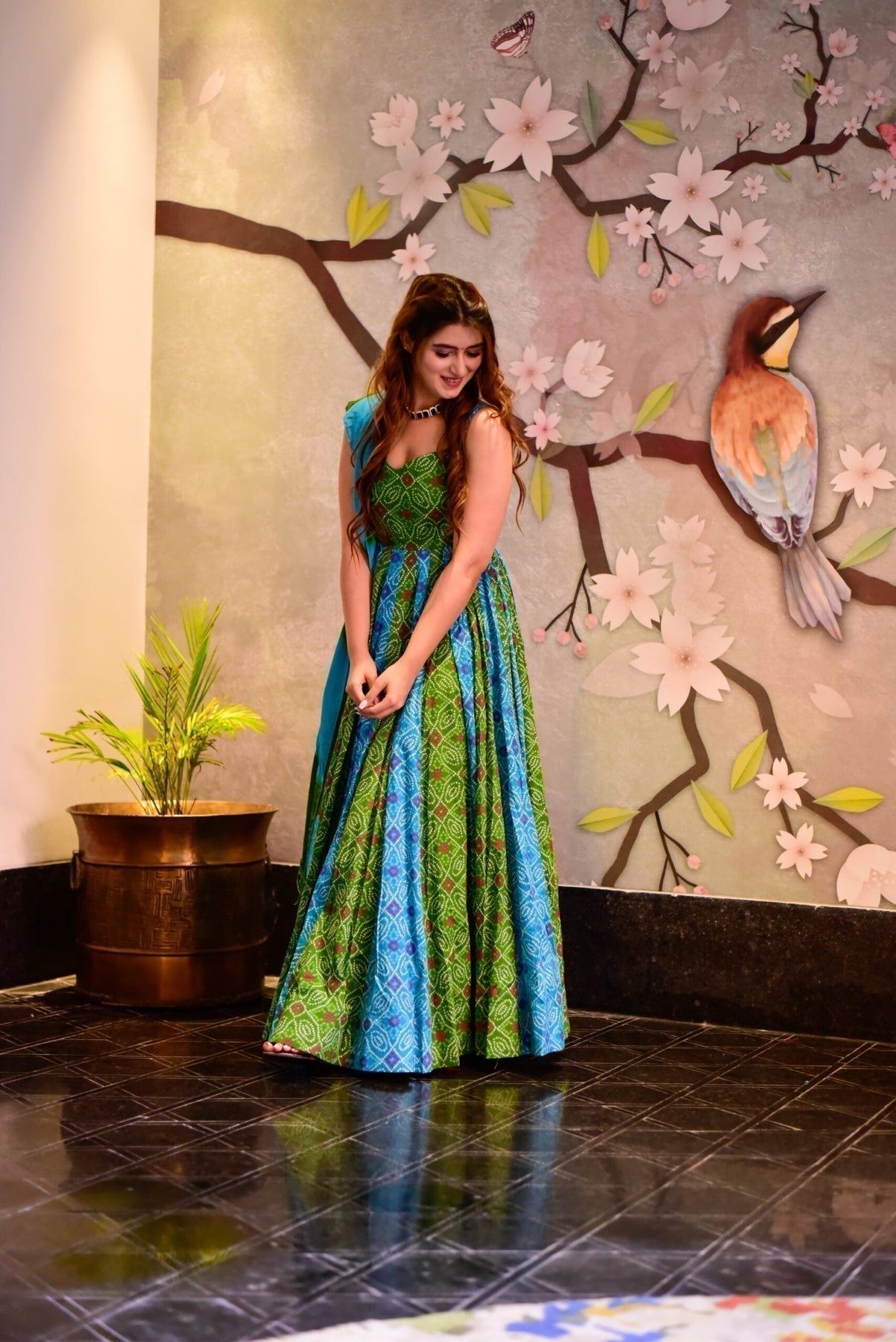 Block Print Anarkali 3 Pieces Combo Kurta, Palazzo & Dupatta - Set 20